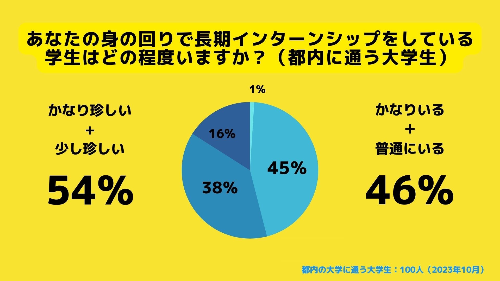 今回の調査では、東京都の大学に通う大学生と、東京都以外の大学に通う大学生の長期インターンの普及率を調査しました。その結果、都内の大学に通う大学生と、東京都以外の大学に通う大学生の長期インターンシップの普及率は20%もの差があることが分かりました。