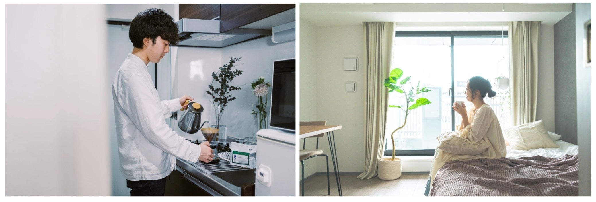 家具・家電・日用消耗品、そして、Wi-Fiや水道・電気・ガスなどのインフラ完備、必要な着替えや仕事の荷物のみで住み始めることができます。また、お部屋探しから、内見、契約までワンストップでオンライン完結し、最短即日から入居可能です。