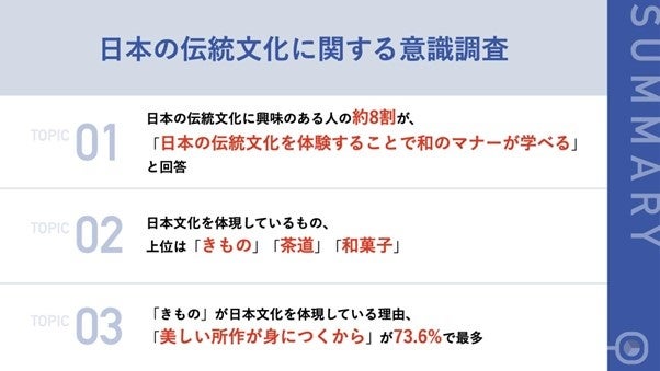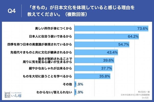 - 「きもの」が日本文化を体現していると感じる理由、「美しい所作が身につくから」が73.6%で最多
