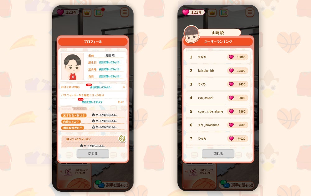 会話や応援で貯めたハートを使って、選手の秘密のプロフィールを一つずつ解放する達成感をぜひ味わっていただきたいです。
