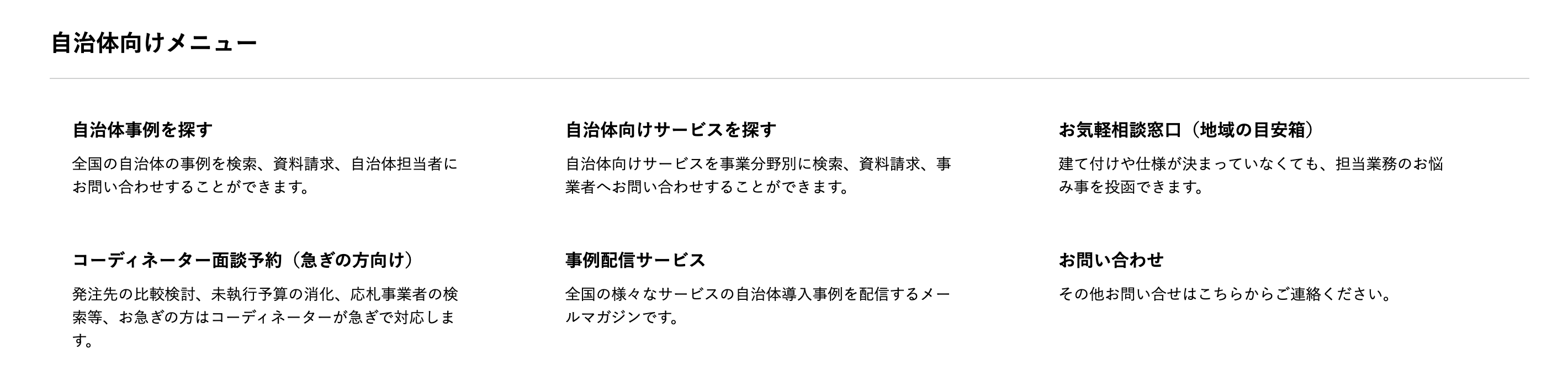 など、どんな些細なことでも大丈夫です。他自治体さんともディスカッションの中で連携を進めてきました。少しでも現状を変えていきたい方は、お問い合わせをお待ちしております。