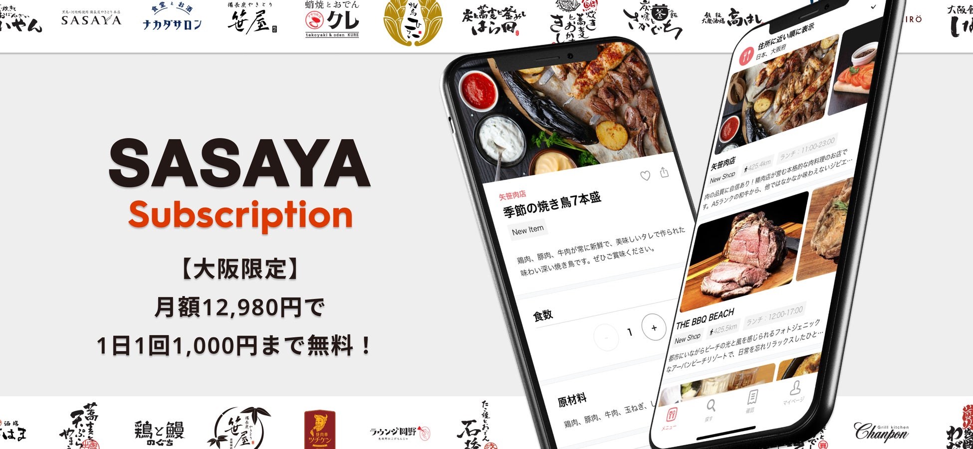 【先着限定】毎日無料でセンベロ!大阪SASAYAグループ60店舗程の飲食店で毎日1,000円分無料になる月額アプリ新登場
