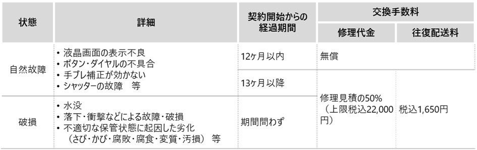 レンタル中に製品の自然故障が発生した場合、迅速に整備済み機材に交換いただけます。また、お客様の責任による破損が発生した場合でも、免責額を限度に、修理費用をお支払いいただくことで交換が可能です。
