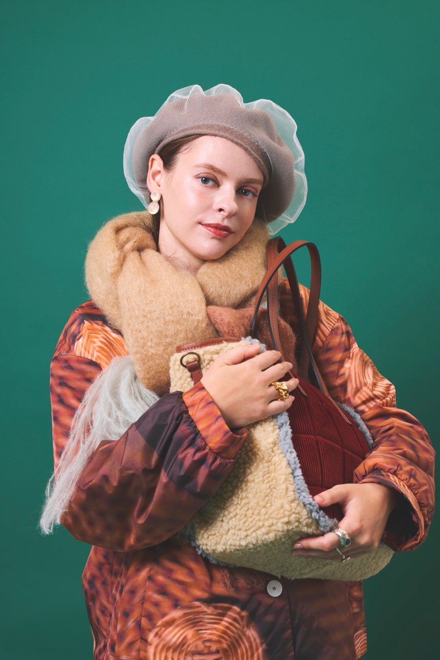 ゴールドジュエリーやトレンチコートなど、クラシックな冬の装いに合わせやすい色彩をイメージしたデザイン。大人っぽいボルドー、ジュエリーとの相性が良いベージュ、洗練されたベビーブルーのカラーリングが、コーディネートのアクセントに。