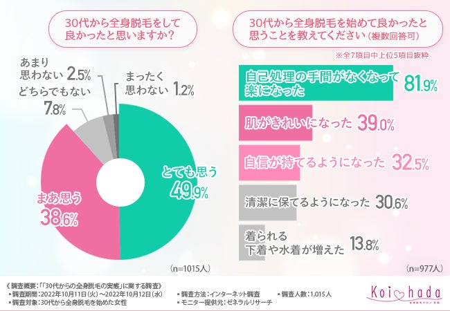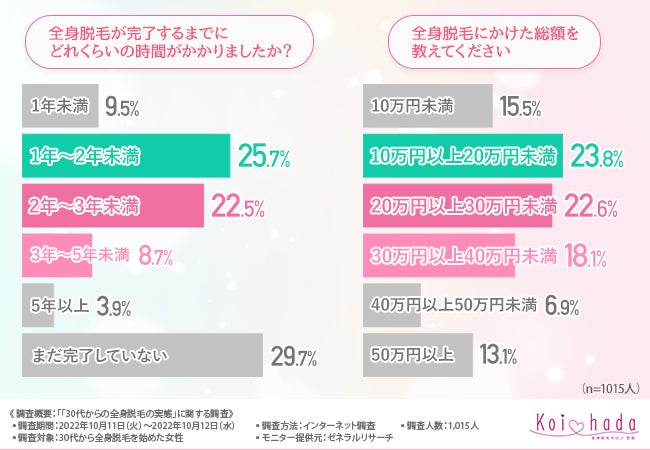 そこで今回、脱毛サロン「恋肌」(https://www.koi-hada.jp/lplj_lv/lp03/?refmedia=142)は、30代から全身脱毛を始めた女性を対象に、「30代からの全身脱毛の実態」に関する調査を実施しました。