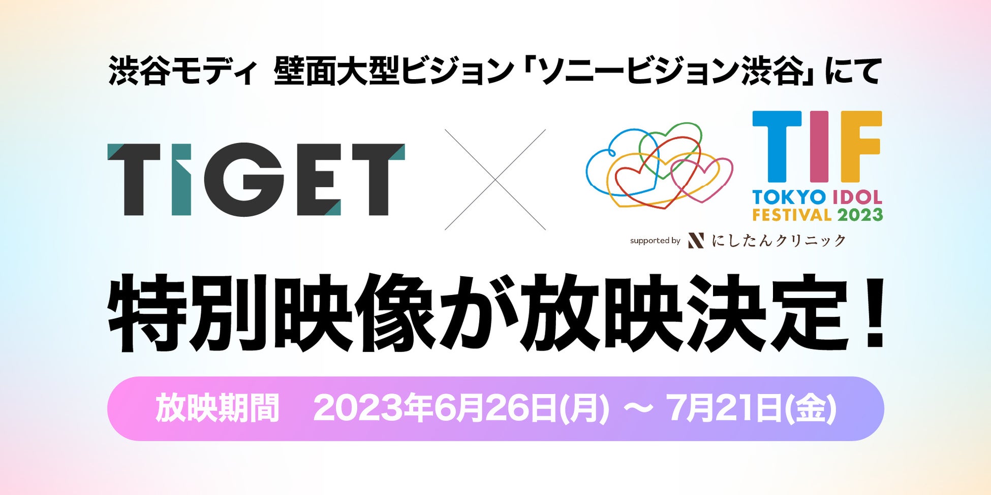 2023年6月26日(月)~7月21日(金)に、渋谷モディの大型ビジョン「ソニービジョン渋谷」にて、TIF2023出演のアイドルによるコメント映像とSPOT映像の放映を開始いたします。