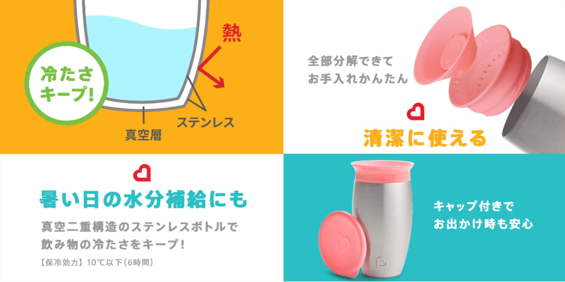 累計92万個出荷のmunchkin ミラクルカップに保冷効果のあるステンレスタイプが登場