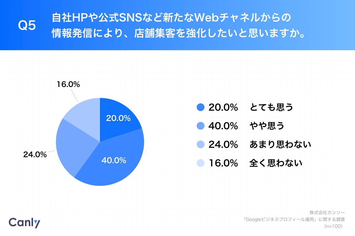 - 6割の方が、「自社HPや公式SNSなど新たなWebチャネルからの情報発信により、店舗集客を強化したい」と回答