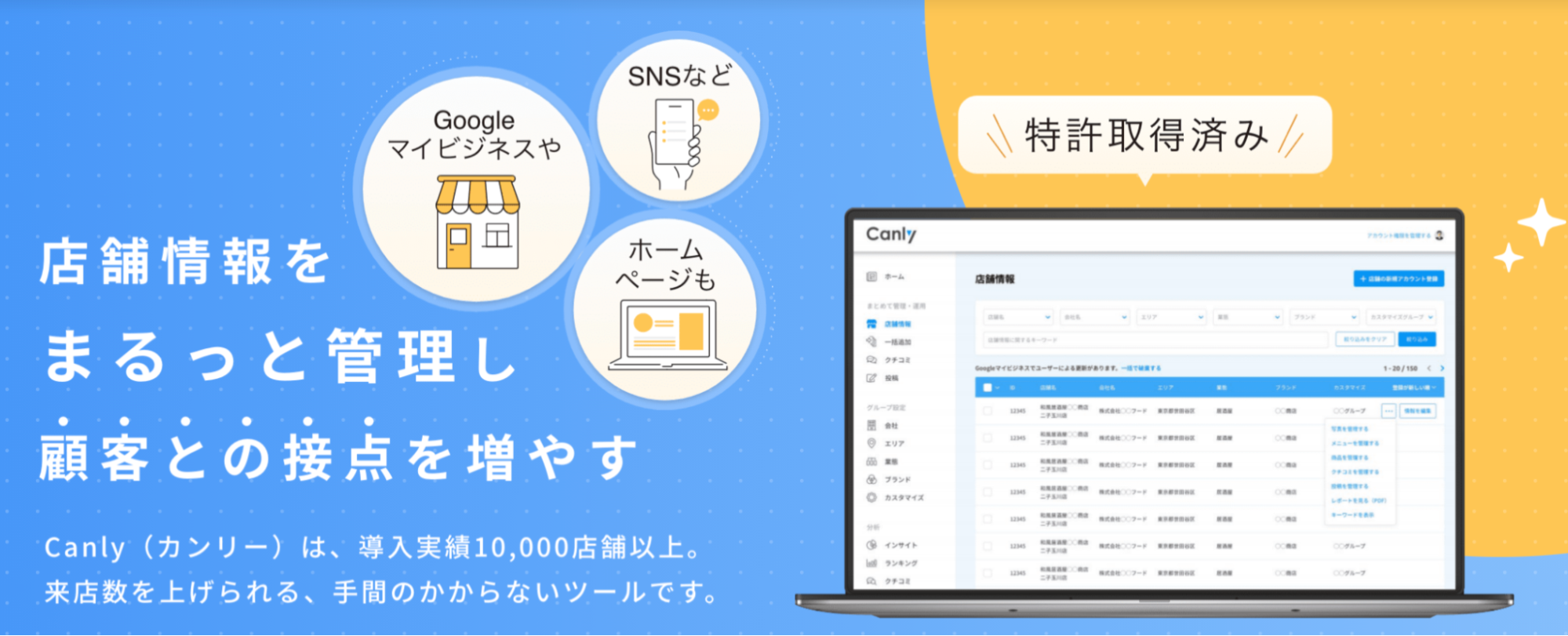 - Googleビジネスプロフィール・HP・各SNSの一括管理サービス「Canly(カンリー)」