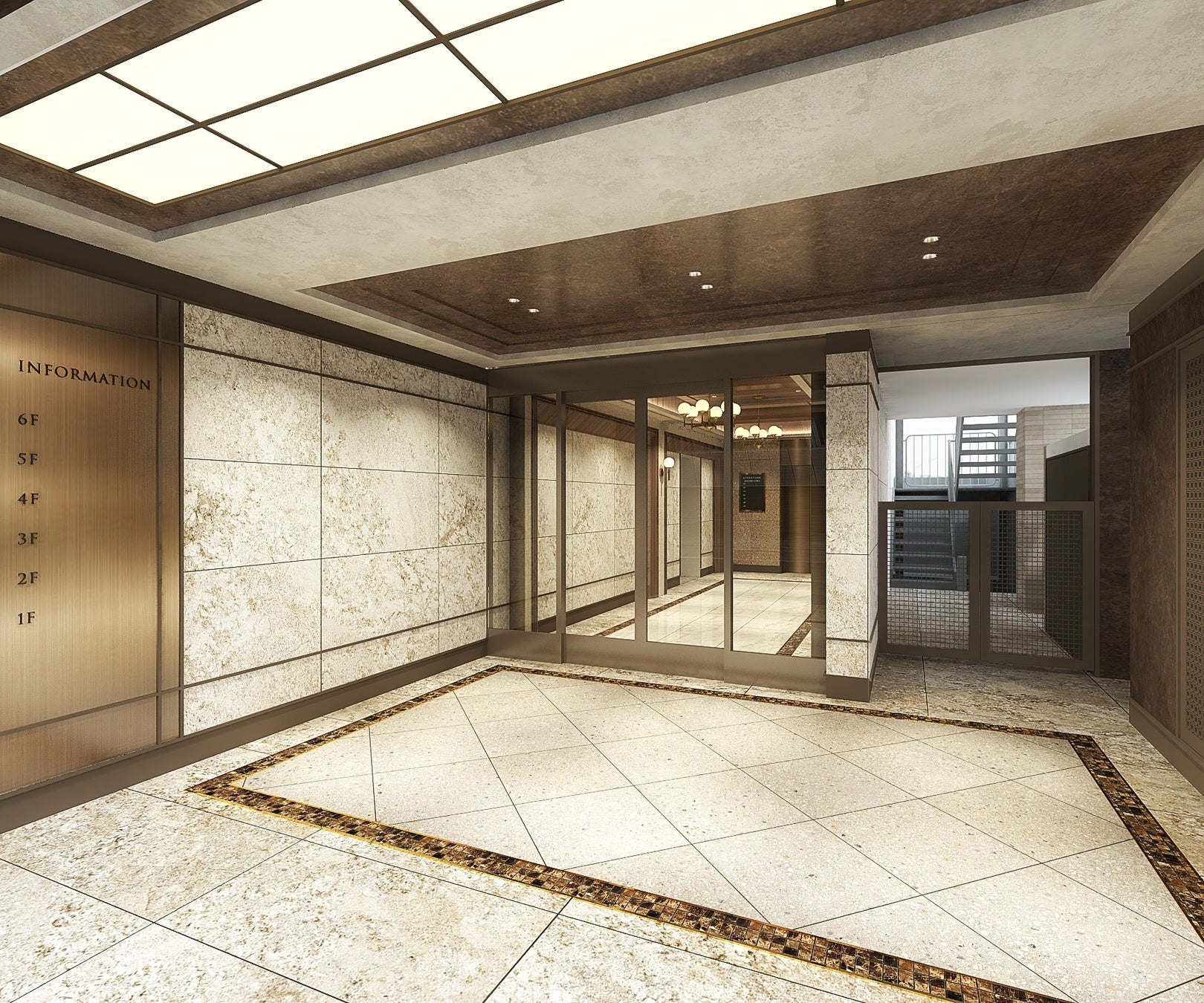 エントランスでは平河町の立地に相応しく、スタイリッシュな印象の空間に柔らかい照明の光が格式高い雰囲気をより演出しています。