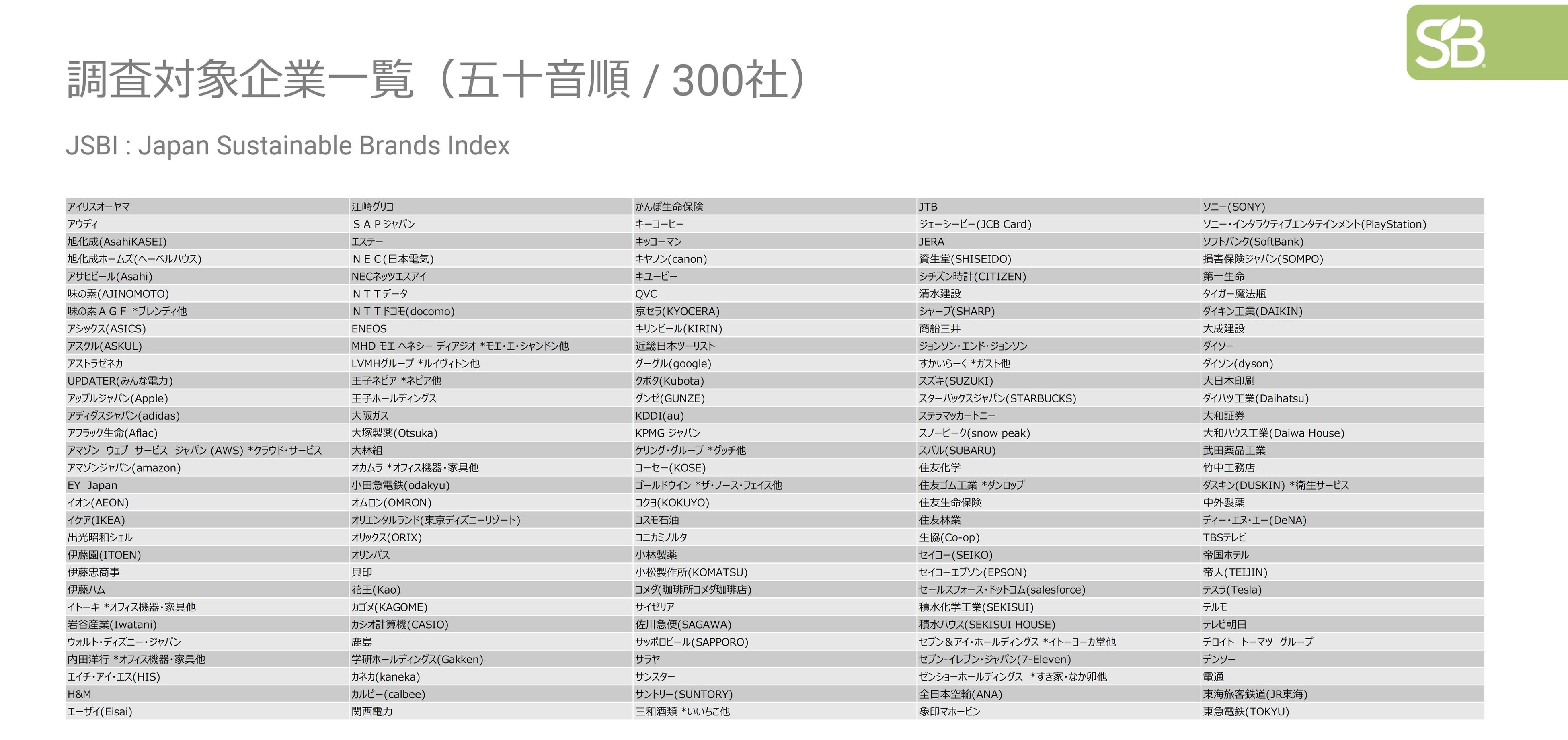 - 調査対象企業一覧(300社)※速報版レポート P51、52を参照