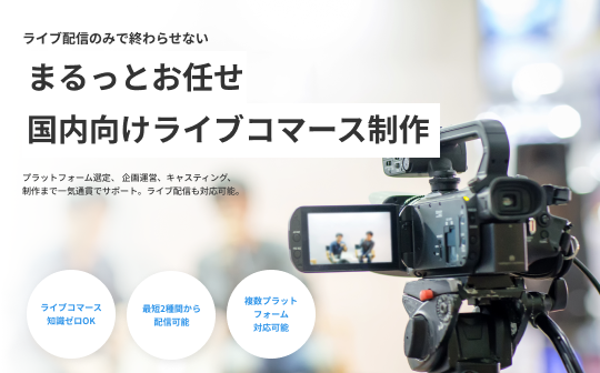 日本国内向けのライブコマースを、まるごとサポート致します。プラットフォーム選定はもちろん、 企画運営、キャスティング、制作まですべてお任せください。 ライブコマース知識ゼロでも、安心して始めてもらえるサポートをしています。お客様それぞれのご要望に合わせ、制作をさせていただきます。