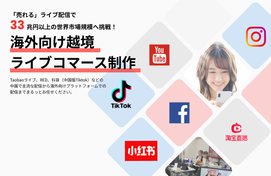 中国向けの越境ライブコマースをまるごとサポート致します。インバウンド&越境EC業界で、10年以上の経験からお客様に合わせた制作を行って参ります。