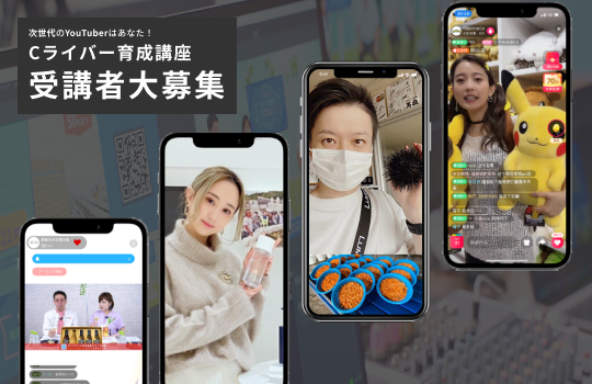Commerce(コマース)+Liver(ライバー)をかけ合わせたCライバー専用の育成講座を行っています。現役で活躍しているプロ講師からの授業・自立するまでのトータルサポートで、短期間で技術を身に着けてもらっています。ライブコマース配信以外でも生かせるスキルなので、様々なジャンルで活躍できるよう導きます。