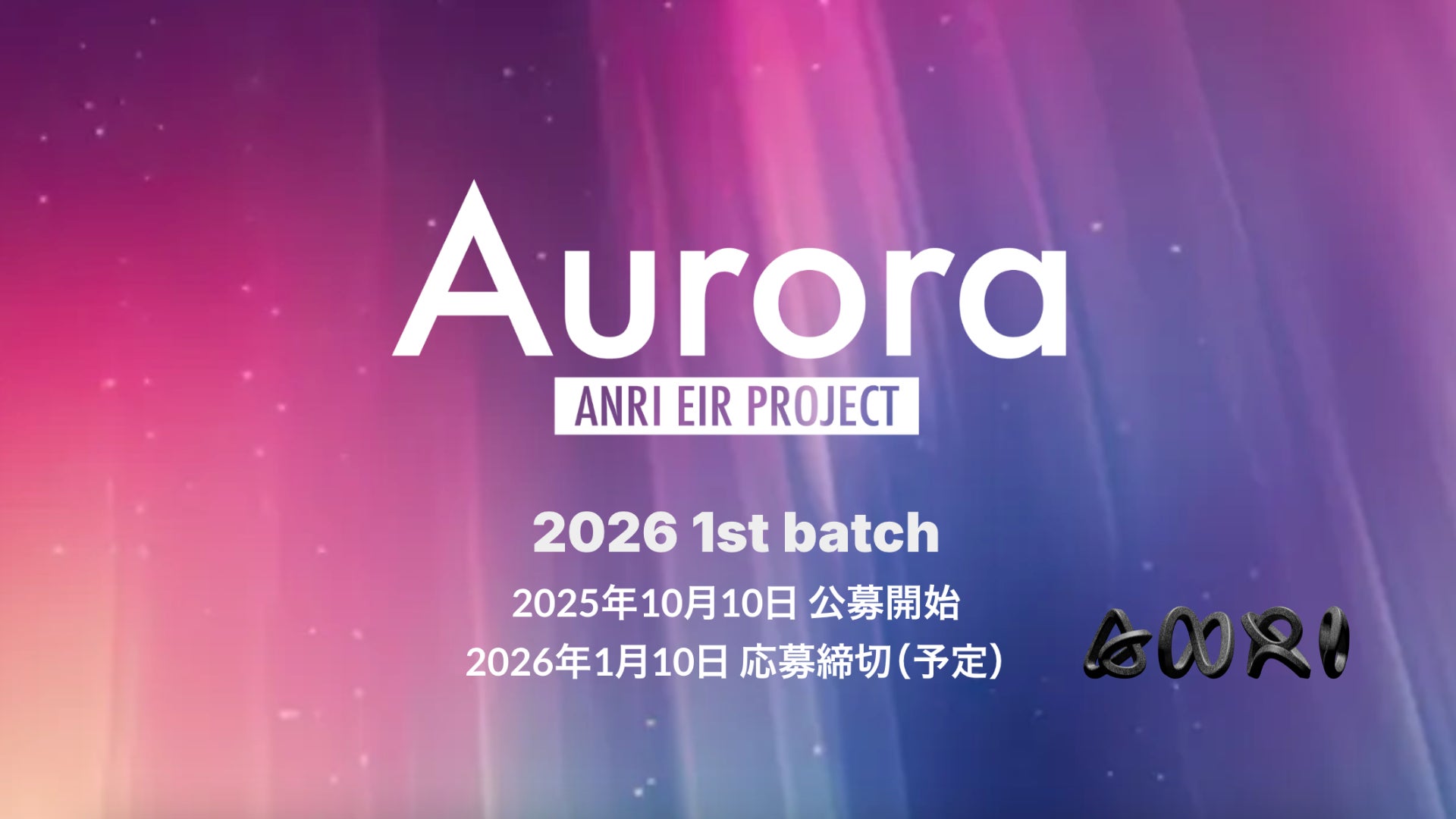 独立系ベンチャーキャピタルANRI(東京都港区:代表パートナー 佐俣アンリ、以下 ANRI)は、大学発の革新的な技術シーズを用いて起業を志す方々のためのEIRプロジェクト「Aurora」2026 1st Batch(第3期目)の募集を2025年10月10日より開始することをお知らせいたします。