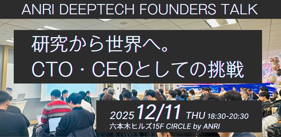 今回の募集開始にあわせて、2025年12月11日(木)にディープテックスタートアップの立ち上げを手掛けるCTOやEIR(客員起業家)によるリアルな体験談を聞ける特別イベントを開催します。