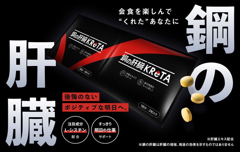 鋼の肝臓KReTA(クレタ)は、植物バイオ事業第一弾の商品です。本商品には、アルコールとアセトアルデヒドを直接分解する働きが期待されるアミノ酸や機能性に注目が集まるシソパウダー(東三河産)を配合しており、翌日のスッキリ感(感じ方には個人差があります。)を体感できるサプリです。また1回分3粒×2袋を切り離すことができるパッケージが特徴で、個包装で手軽に仲間とシェアできます。