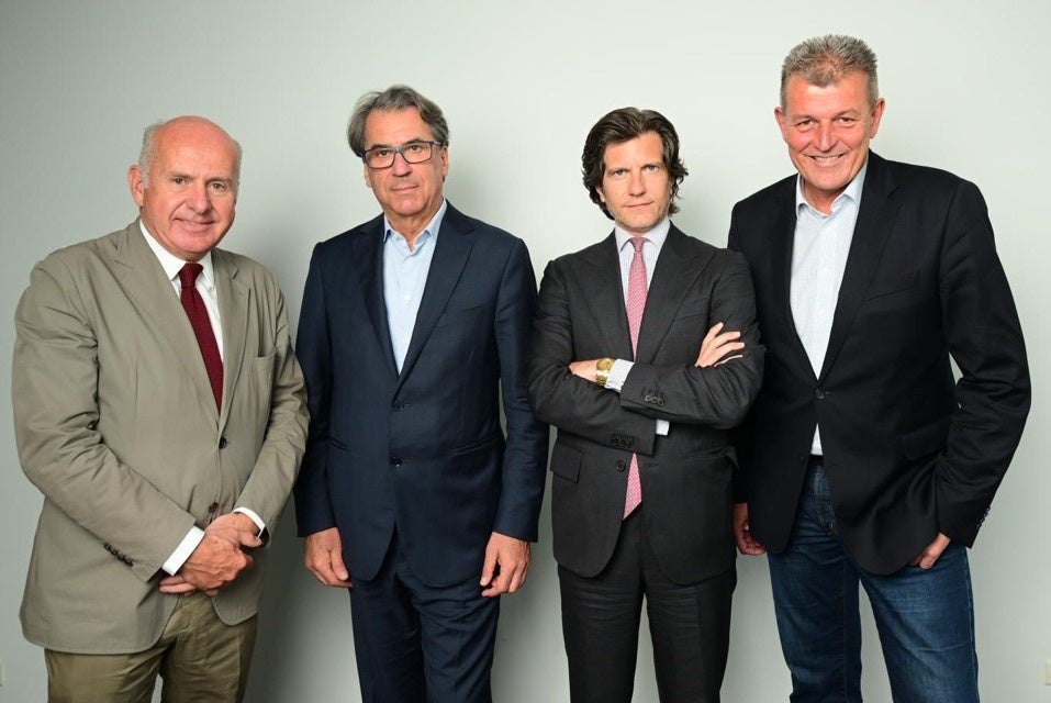 - 左からエリック・ドゥ・セイン副会長(ヤマハ発動機 ヨーロッパ N.V.代表)、ステファン・ピアラー副会長(KTM AG CEO)、ミケーレ・コラニーノ会長(ピアッジオグループ最高責任者)、マルクス・シュラム副会長(BMWモトラッド代表)