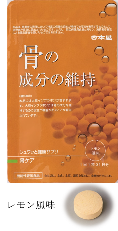 機能性関与成分である大豆イソフラボンは構造がエストロゲン(女性ホルモン)に似ており、植物エストロゲンと呼ばれることがあります。大豆イソフラボンは「骨からカルシウムが溶け出すのを抑える」重要な働きをしていて、年を重ねるごとに骨密度が低下してしまう私たちにとって欠かせないものです。