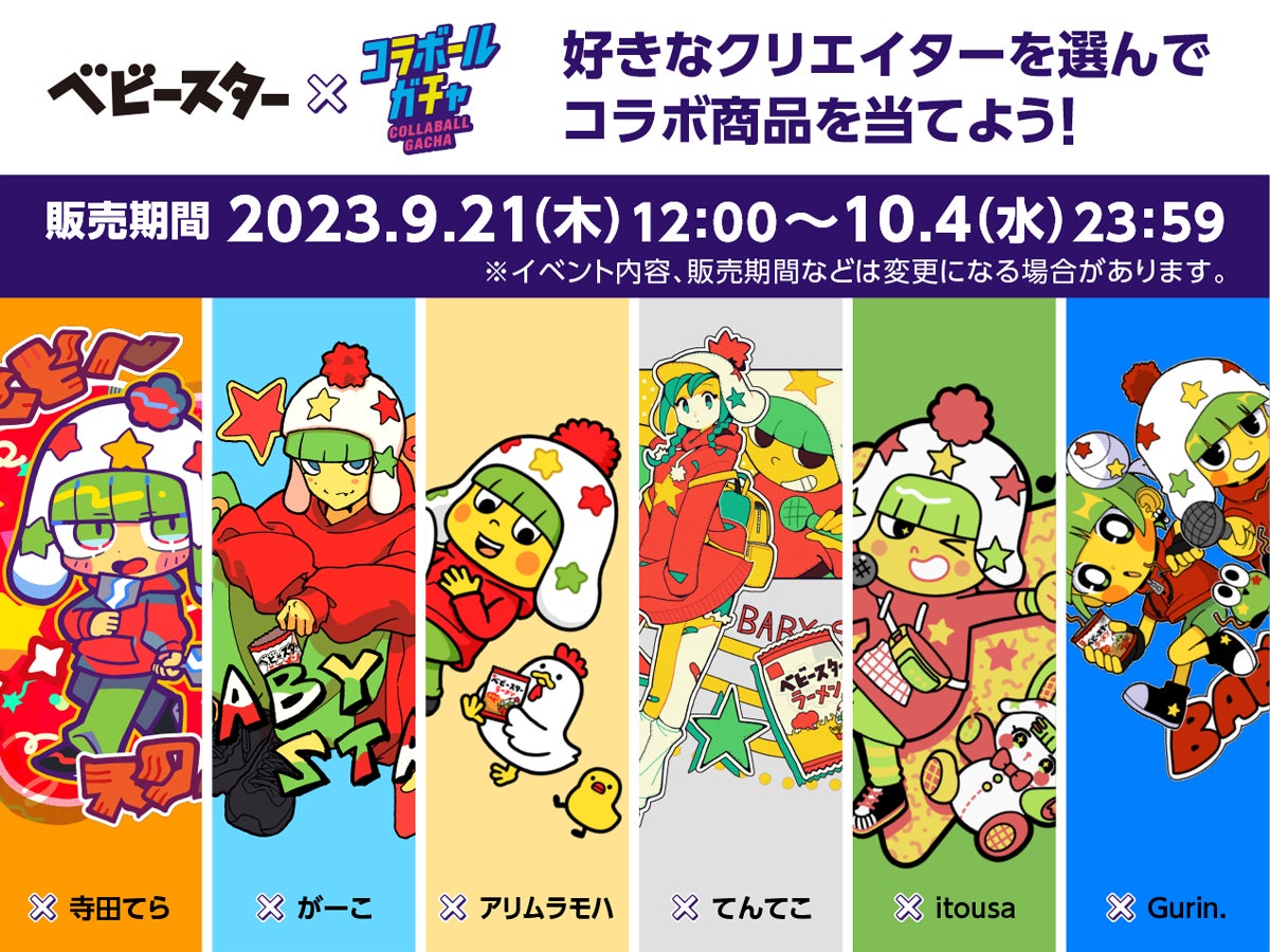 ベビースター×6名のクリエイターのコラボレーションによるオンラインサービス「コラボールガチャ」が9/21より提供開始