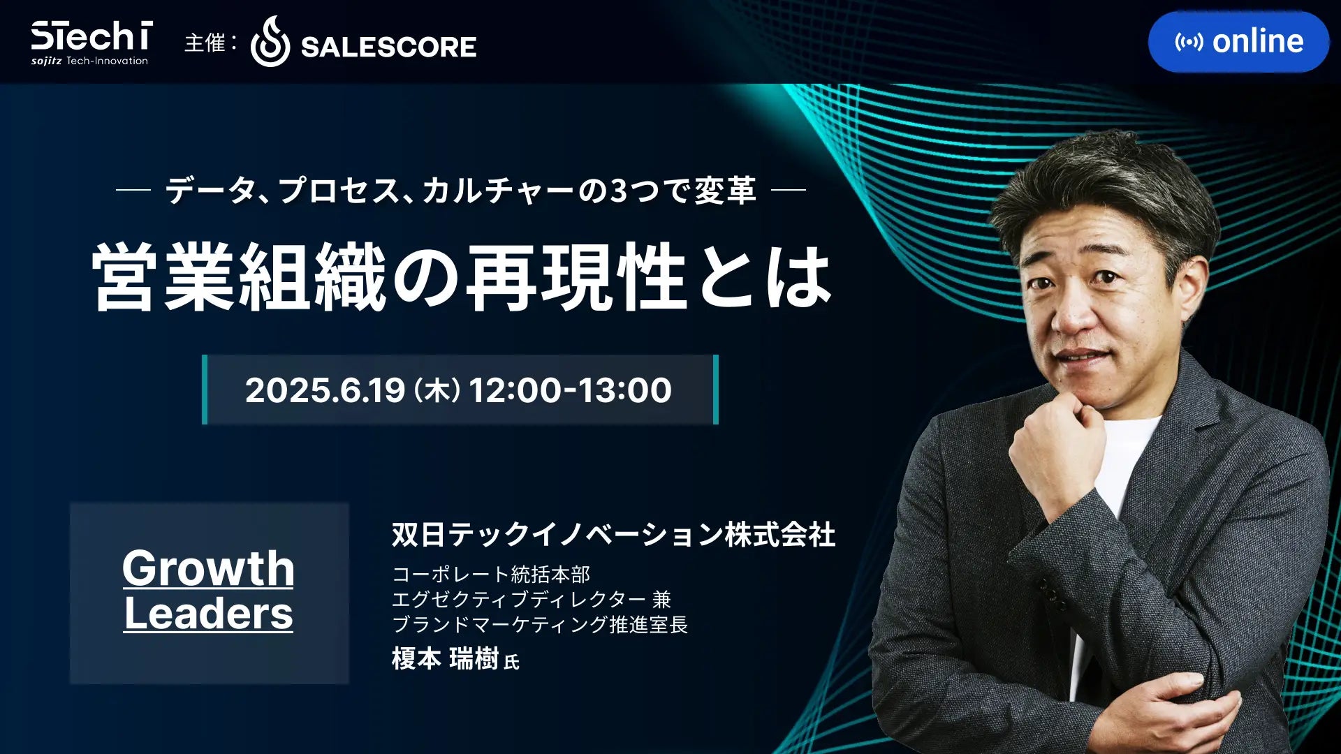 「達成の喜びをあたり前に」をビジョンに掲げるSALESCORE株式会社(本社:東京都渋谷区、代表取締役:中内崇人、以下:当社)は、「営業文化改革」「営業プロセスの再設計」「営業とマーケティングの連携強化」に焦点をあてた実践的な学びの場として、ウェビナーシリーズ『Growth Leaders』を開始いたします。第1回は、双日テックイノベーション株式会社にてアカウント営業のセールスイネーブルメントに取り組まれている榎本瑞樹氏をお招きし、再現性ある営業組織のあり方に悩む方や変革を志すリーダー層の皆様にとってリアルな思考と取り組みに触れられる1時間をお届けいたします。