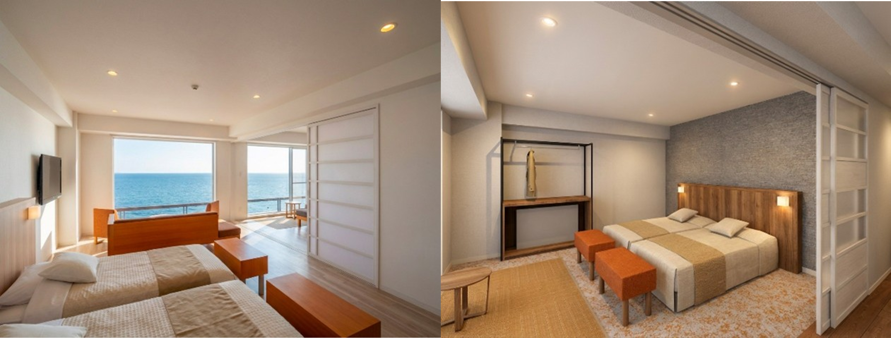 近年、旅行スタイルは多様化し、「広さ」「快適性」「体験価値」を重視する傾向が高まっています。今回の改修では、客室空間そのものを滞在の楽しみと位置づけ、居住性・デザイン性・機能性の向上はもちろん上質志向のお客様、ファミリーやグループでのご利用まで、幅広いニーズに対応する客室ラインアップへと進化します。