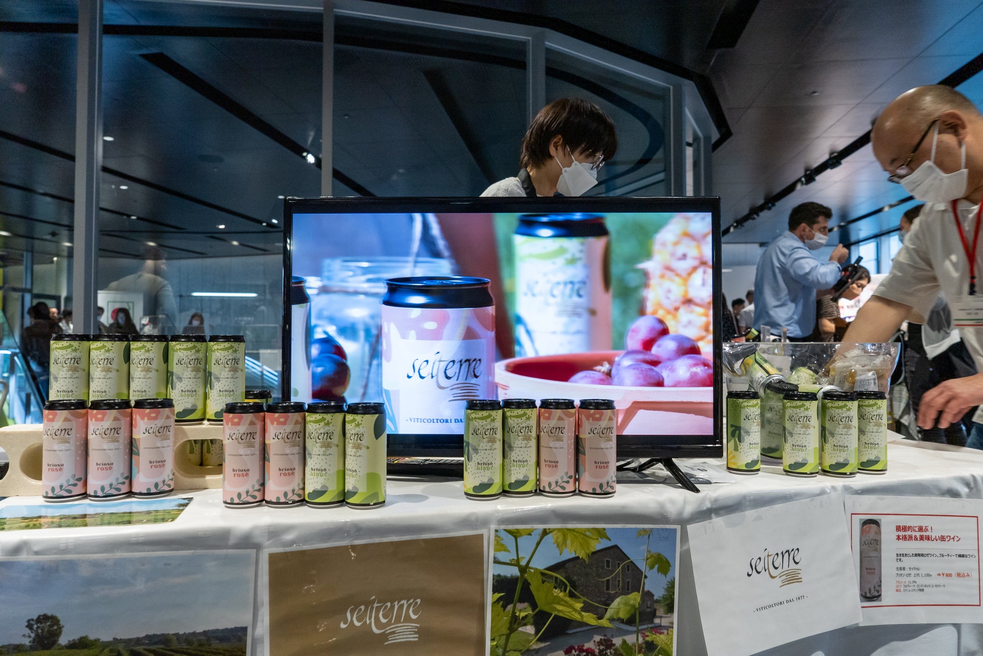 そして、イタリアの老舗ワイナリーSEITERREがリリースしたばかりの美味しい缶ワインがイタリア、アモーレ・ミオのイベント、渋谷で初めてお披露目されました。微発泡のフルーティな味わいBrioso Rosato(ブリオーゾ ロザート 辛口ロゼワイン)と爽やかな味わいBrioso Bianco(ブリオーゾ ビアンコ、辛口白ワイン)いずれも人気でした。