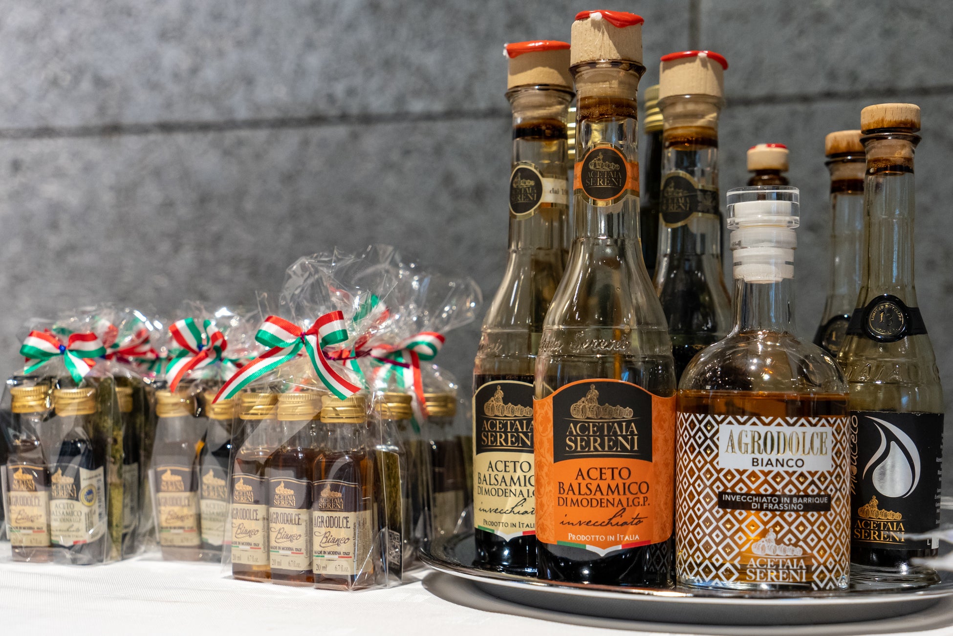 4階のグルメギャラリーでは、美食の国イタリアならではの様々なイタリア産のグルメ商品コーナーを設けました。エミリア・ロマーニャ州食の都・モデナの最高峰のバルサミコ酢ブランド「」やオリーブオイルやイタリアワインなどをPRする販売コーナーにも多くのご来場者の方が興味津々でした。世界で愛飲されているイタリアを代表する飲料メーカー・サンペリグリーノも販売しました。