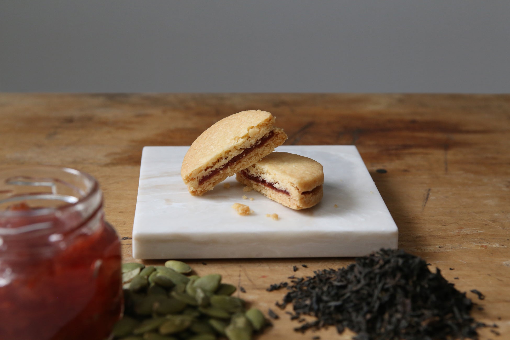 日にちの経過とともに、ジャムは甘酸っぱいフレッシュな味わいから濃厚な甘さに、クッキー生地はジャムが馴染んでさっくりからしっとりと食感が変化していきます。味わいと食感の変化も楽しめるクッキーです。