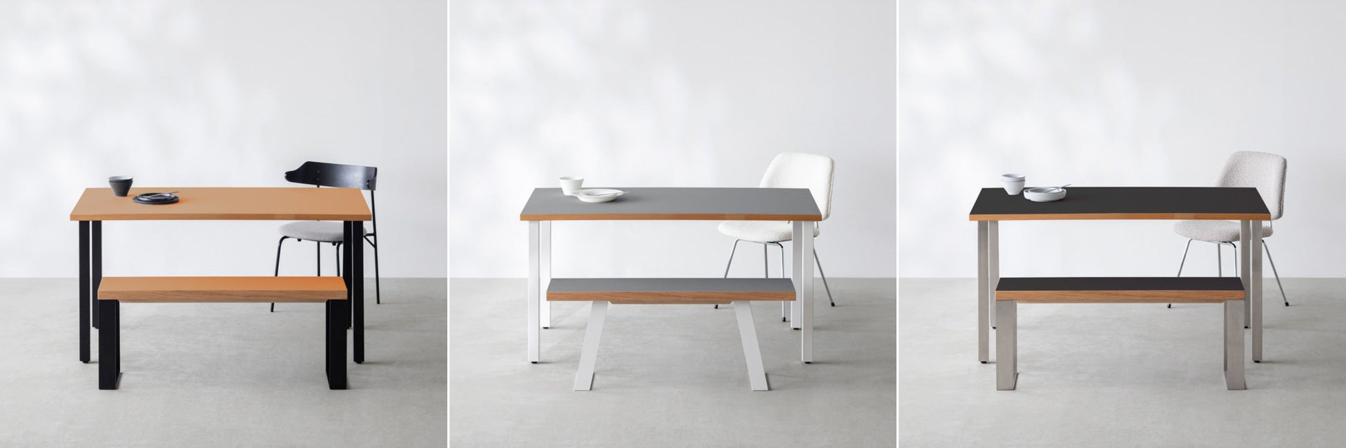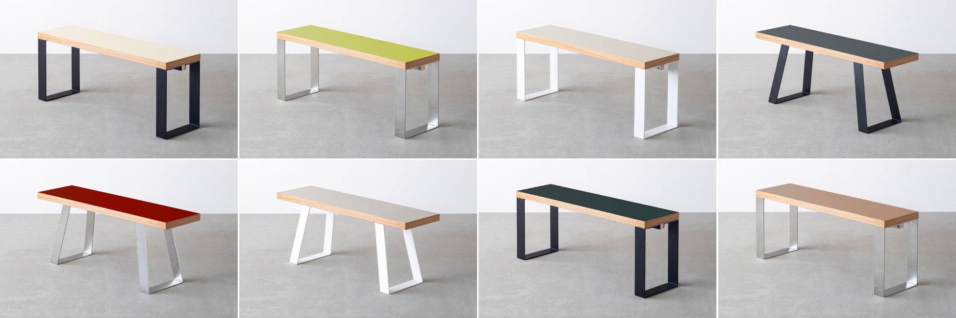 豊富な天板と脚のバリエーション、1cm単位のサイズオーダーが可能なTHEシリーズに「THE BENCH / リノリウム 全24色」が加わりました。