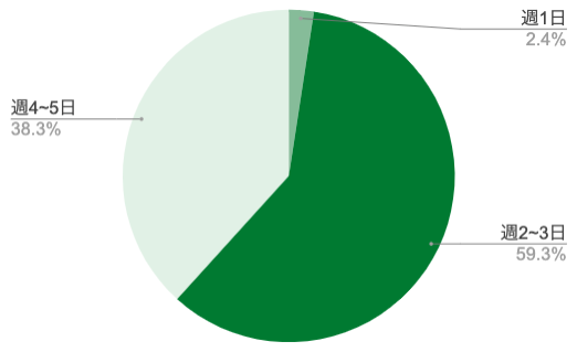 92%がリモートの案件で在宅勤務も可能、働く場所にしばられない自由な働き方に近づけます。案件の平均稼働日数は週2.4日、週1〜週3日の案件が多く、あともう1案件ほしい時など効率よく複業案件を探すことができます。