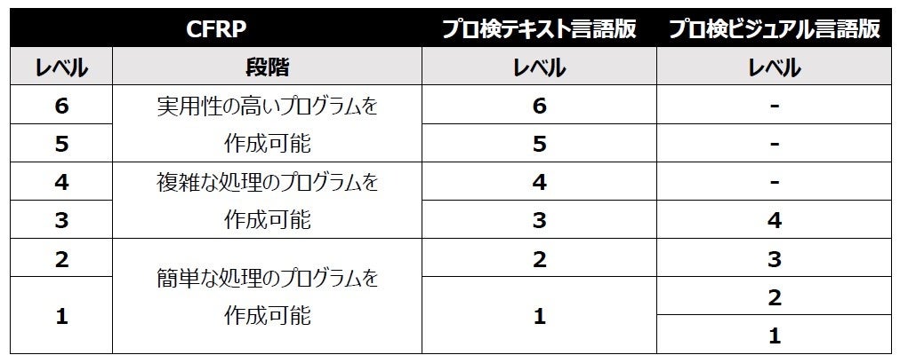 『プログラミング能力検定』協会が提供するプロ検はCFRPに準拠しております。プロ検を受験いただくことで、CFRPに沿い現状のプログラミング能力値を測定・把握することが可能です。