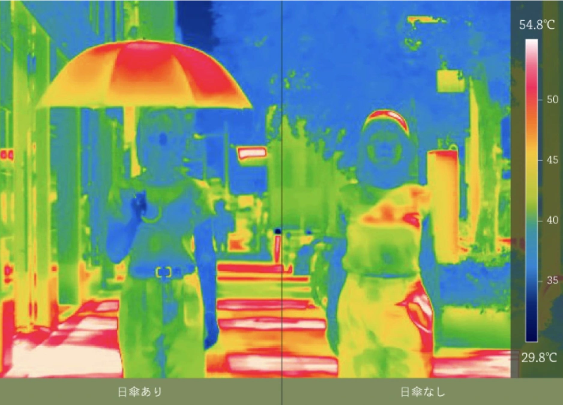 幾重にも重ねられた遮熱フィルムが、傘の下に涼やかな空気を生み出し、