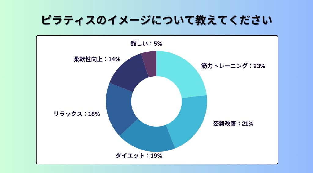 ピラティスは筋力トレーニングやダイエットに効果的、ヨガは柔軟性向上やリラックスに効果的というイメージが強いことが分かりました。また、両者ともに姿勢改善に効果があるとの認識も見られました。