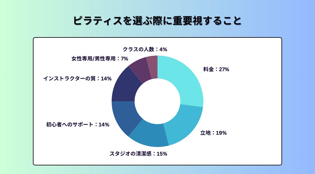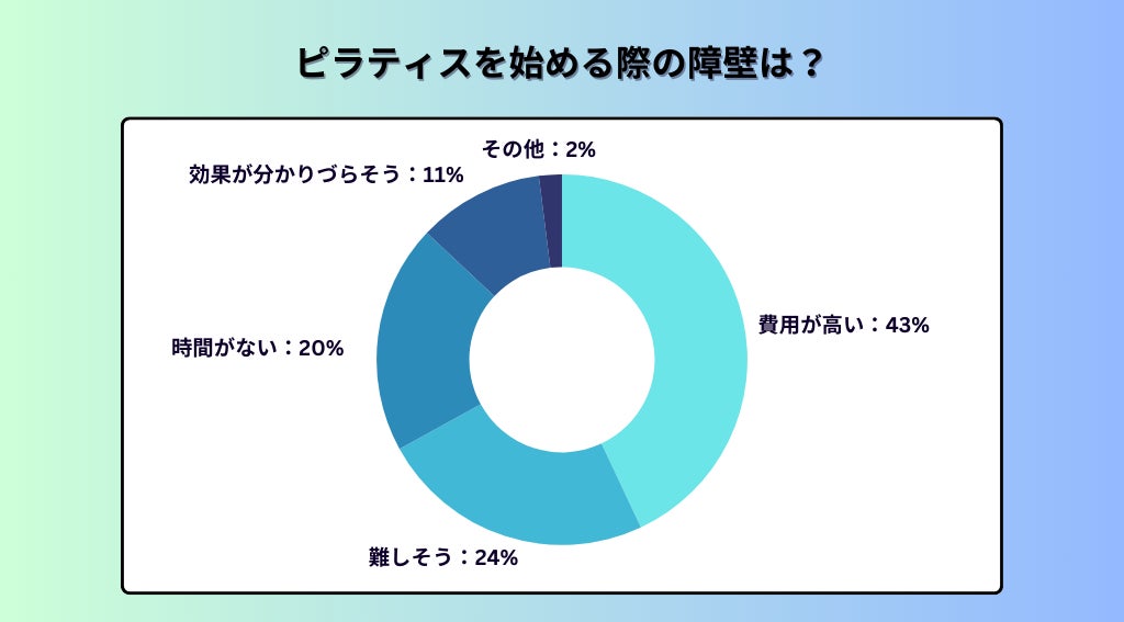 ピラティススタジオを選ぶ際、料金を最も重視するという回答が多数を占めました。また、ピラティスを始める際の障壁としても料金が1番に挙げられました。