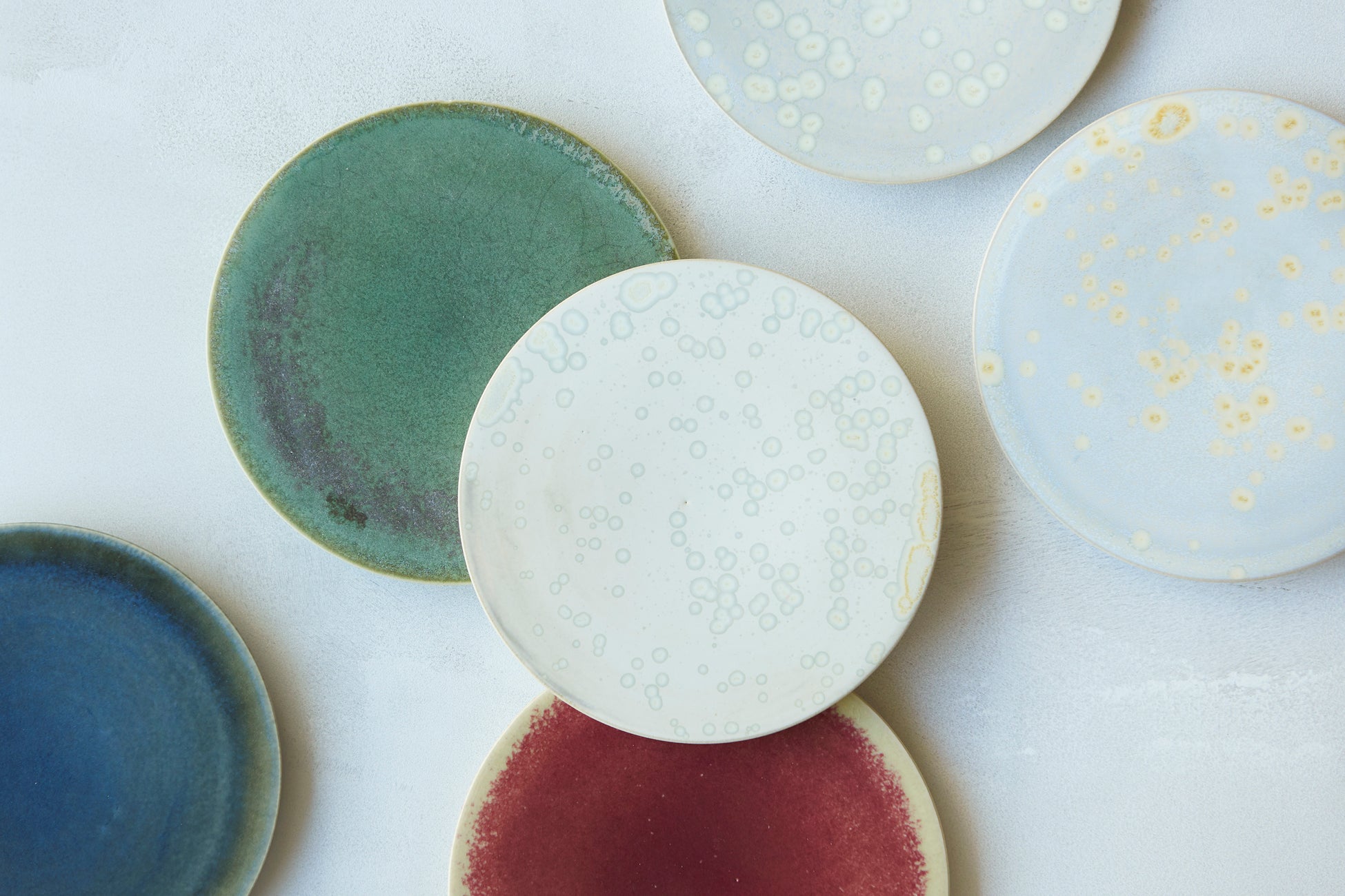 ピスタチオのしっとりとやわらかい緑とラズベリーの赤が引き立つ、ホリデー限定フレーバーのためのオリジナルプレート。この季節にぴったりな常緑樹の緑、ワインのような深い赤、冬の寒空のようなダークグレー、雪景色のような白の4色を販売します。釉薬の重ね方や焼き加減を何度も調整し生まれた、深みのある色味と質感をお楽しみください。