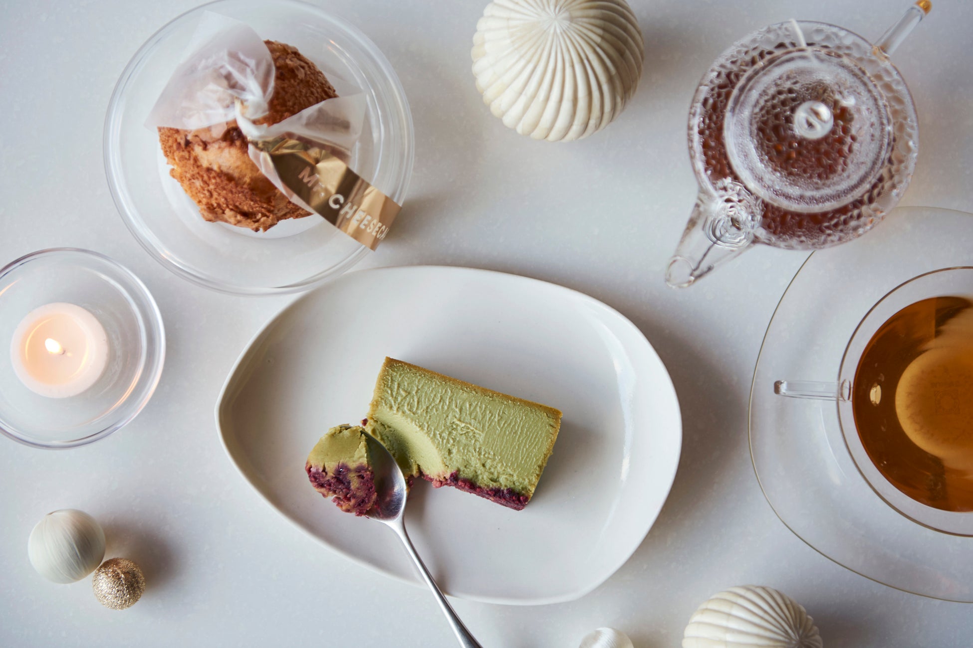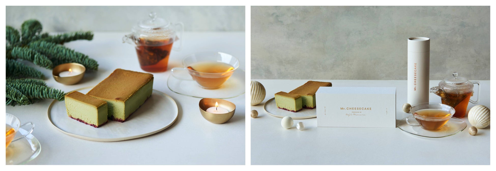 「Mr. CHEESECAKE pistachio raspberry」のために作られたオリジナルブレンドティーとのペアリングをお楽しみいただけるセット商品。ブレンドティーは、季節を象徴するシナモンとクローブの香りをベースに、ゆずや乾燥りんごチップなどを組み合わせました。心も体もあたたまる紅茶とのペアリングで、特別なホリデーシーズンをお過ごしください。