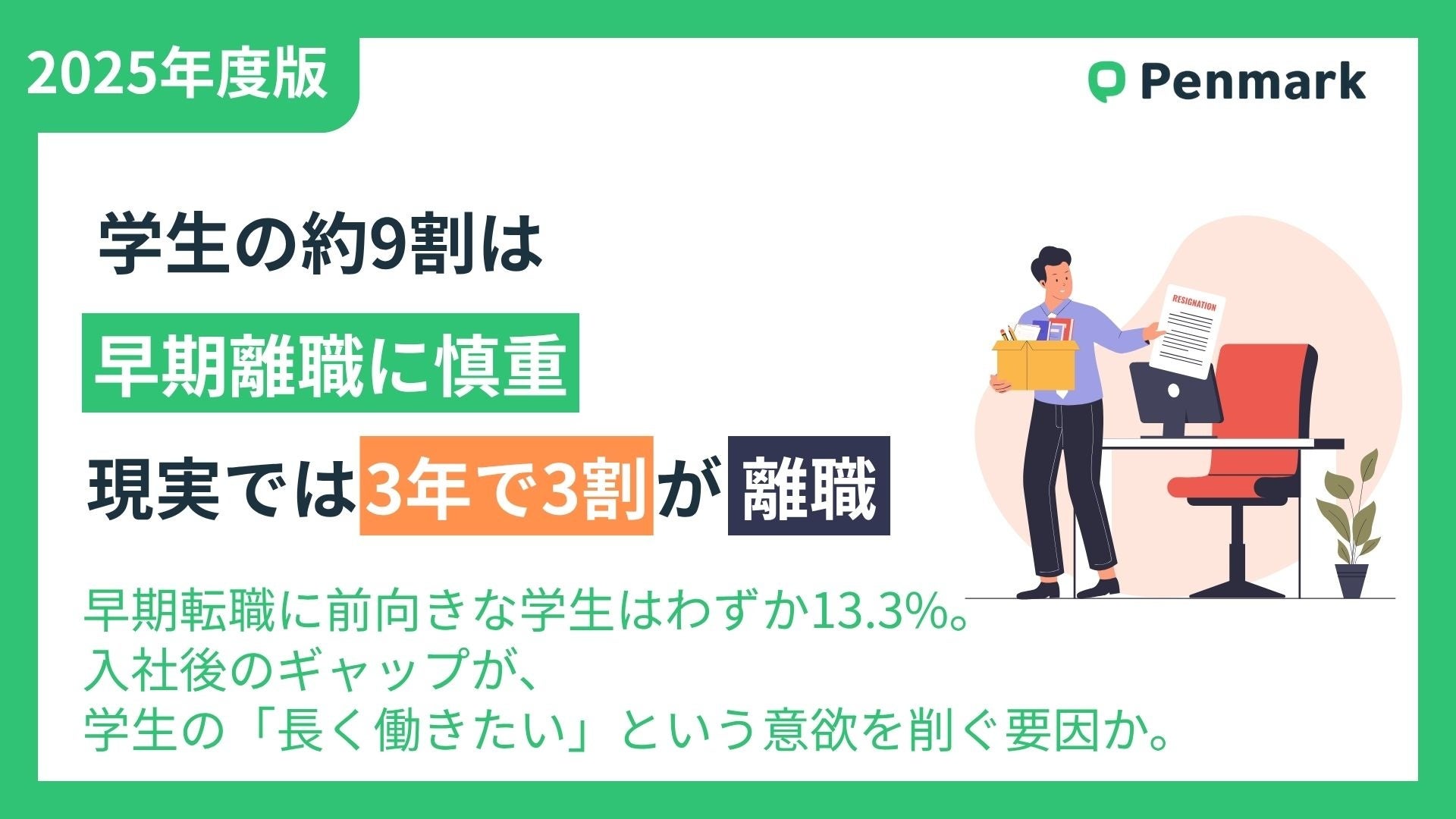 【Z世代の就活意識調査】学生の約9割は早期離職に慎重、しかし現実は“3年で3割”が離職。Z世代のキャリア観、理想と現実の乖離が明らかに。