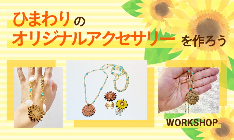 夏の日差しの中でサラッとつけるのにもぴったりのひまわりのアクセサリーを一緒に作りませんか?ビギナーにもおすすめのアクセサリー作りのワークショップです。