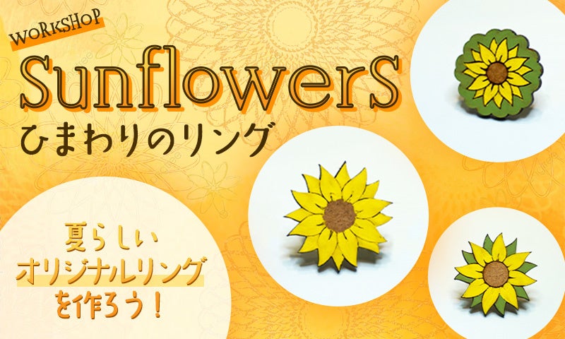 ひまわりの形にカットしたMDFをお好みのカラーで色付け!夏らしいオリジナルなリングを作ろう。