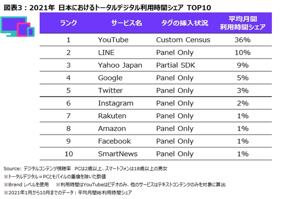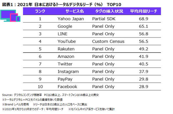 TOPS OF 2021: DIGITAL IN JAPAN~ニールセン2021年日本のインターネットサービス利用者数/利用時間ランキングを発表~