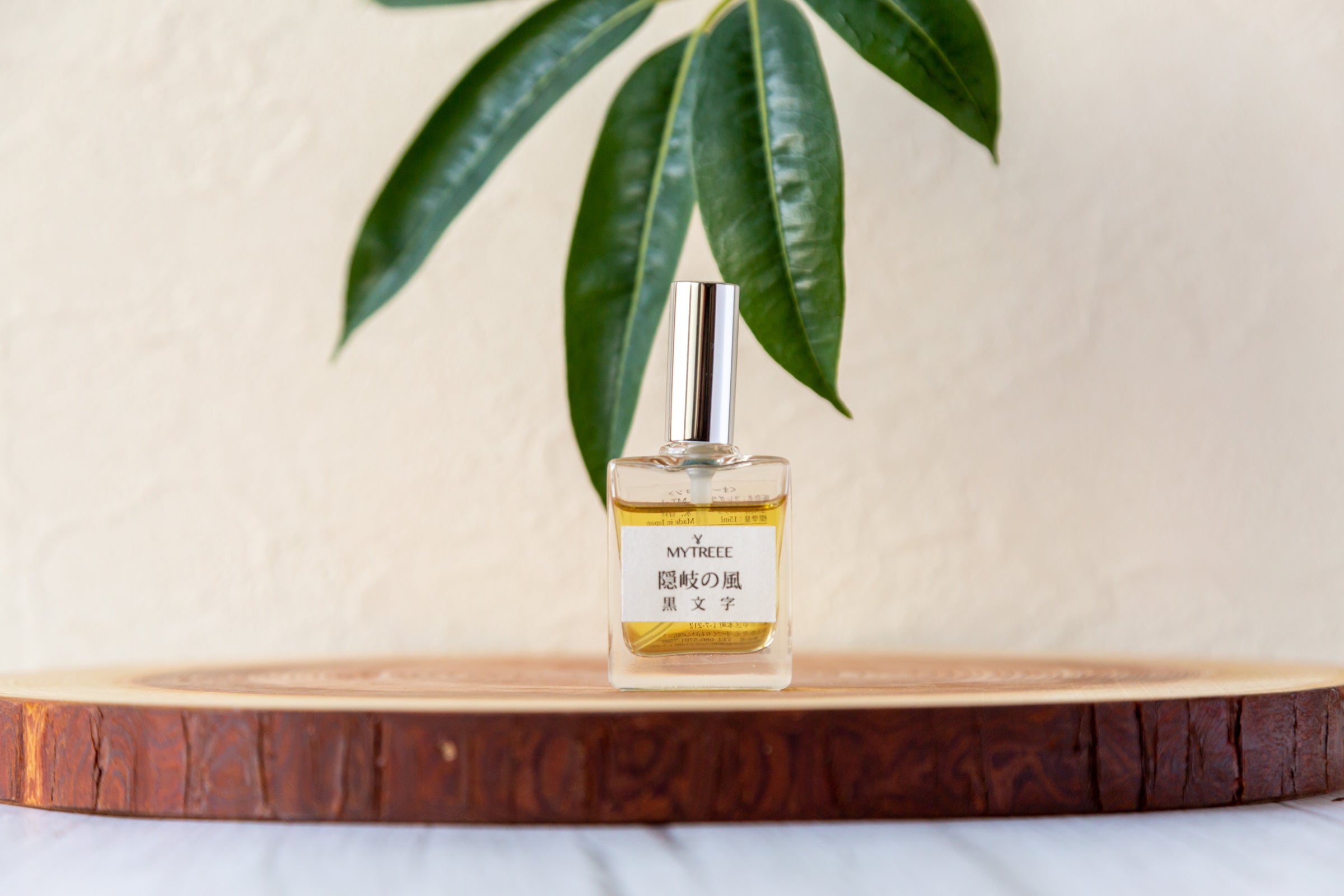 横浜で建築デザイナーとして活躍している“mytreee”代表者の池田瑞絵さんは、隠岐の森林資源を活かし、隠岐で育った植物で製作で製作する「隠岐100%」のプロダクトを開発しています。なかでも隠岐産の黒文字がもつ天然のアロマに注目し、ジェンダーレスに楽しめる黒文字のオーデコロンを開発しました。森を手入れする際に伐採されてしまう黒文字を使用し、手作業で丁寧に蒸留・抽出しています。