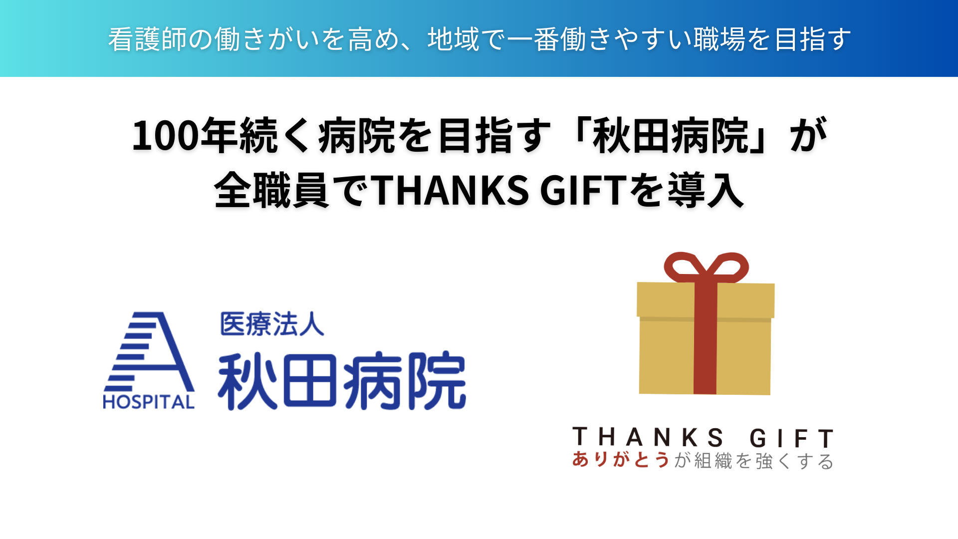 愛知県の医療法人秋田病院が従業員280名を対象に、THANKS GIFT導入を決定。
