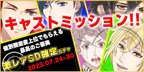 キャストと沢山おしゃべりして豪華報酬を貰っちゃおう☆今回は個別親密度1~3位までに入るとペットモチーフのSD彼が手に入っちゃうよ!その他豪華報酬もあるから、上位目指して頑張ってね!