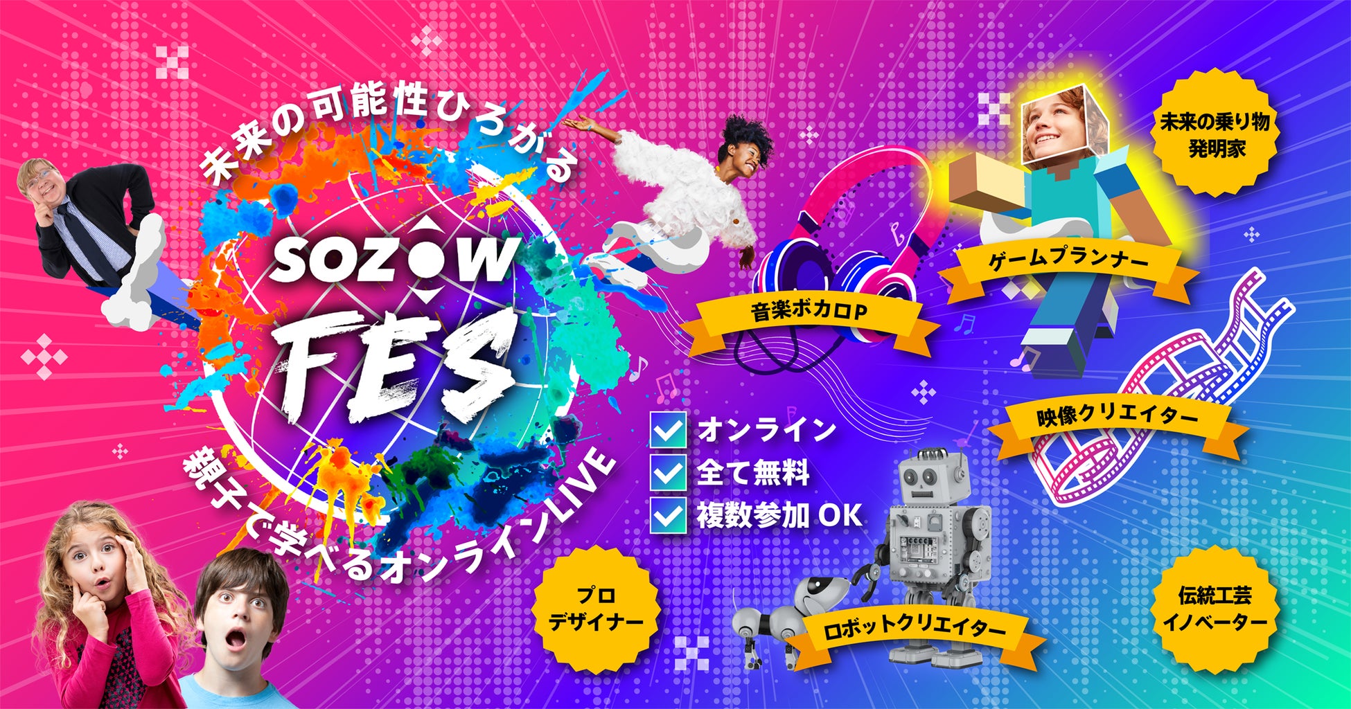 【小中学生・保護者向け|無料】親子で楽しめる学びのオンラインLIVEイベント「SOZOWフェス」を1/22(日)〜3/12(日)に開催。各業界から豪華ゲストが登場!
