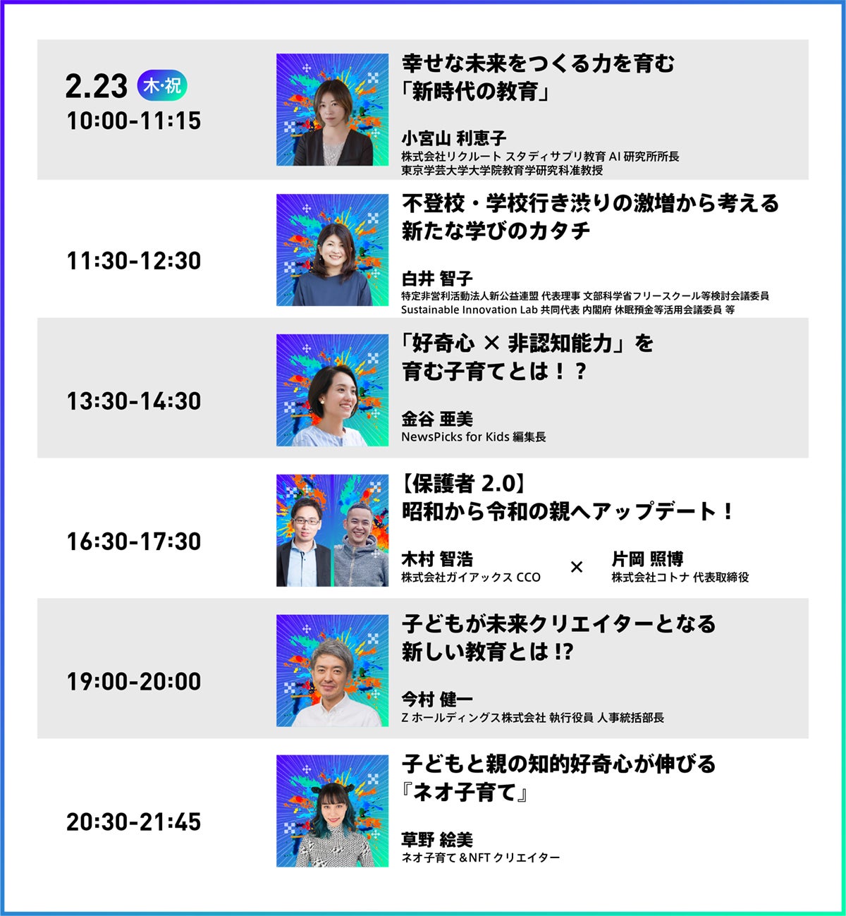 - 保護者向け「SOZOWフェス〜新時代の教育・子育て〜」概要