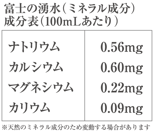 ※1 富士の湧水または富士の天然水とは成分表示中の常水のこと