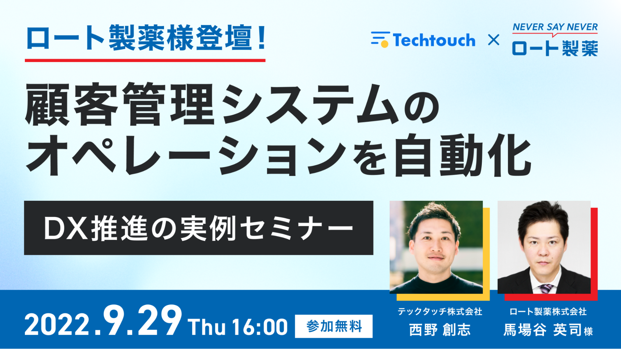 ■9/29開催「【Let’sテックタッチ】ロート製薬様登壇!顧客管理システムのオペレーションを自動化〜DX推進の実例セミナー〜」開催概要
