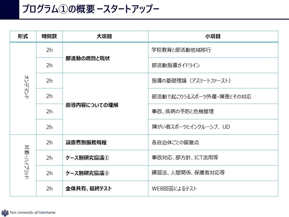 桐蔭横浜大学の教員養成、スポーツ教育の資源と実績をフル活用した、3段階構成のプログラムとなり、