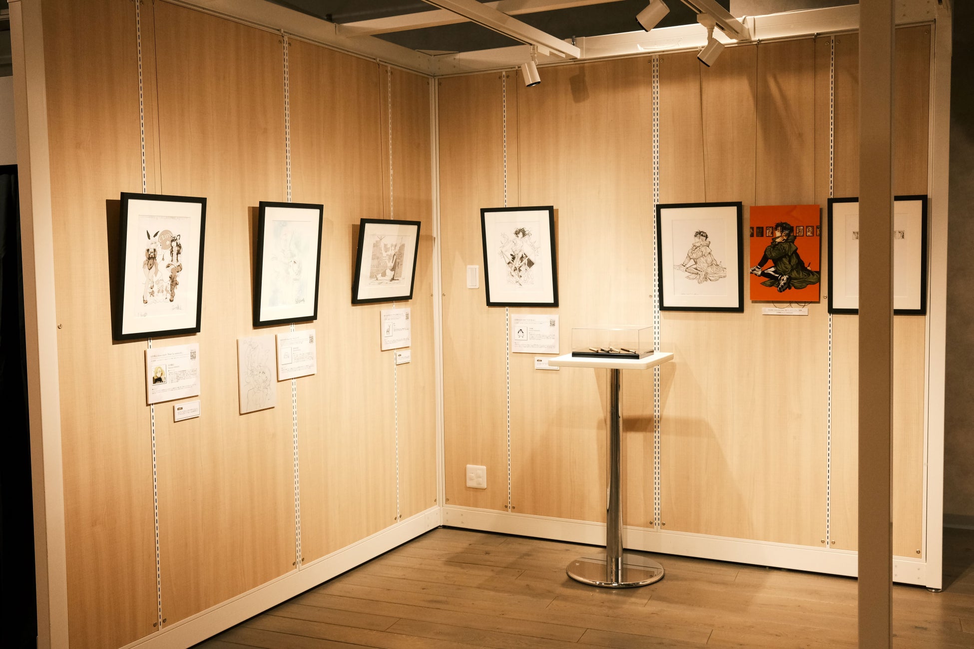 二区画目は原画の展示となっており、額装された原画8点と展覧会キービジュアルの9点が軸に展開されている。着彩のニュアンスや作品のタッチなど原画だからこそ楽しめる内容になっている。また、会場内には作家直筆の色紙も展示されている。